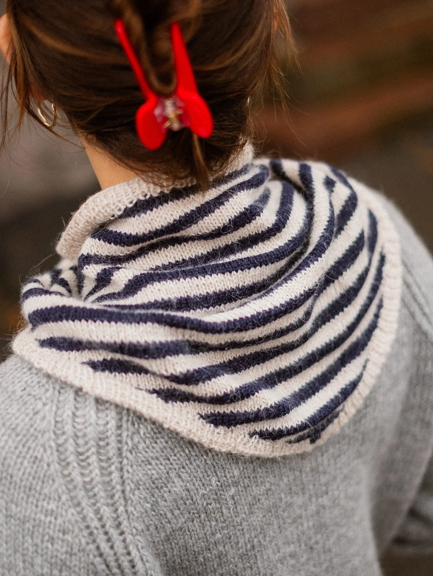 In My Stripes Era Scarf is the perfect little accessory for when you want to add a touch of personality to your outfit. You can wear the scarf loosely tied around your neck for a bit of sailor-meets-French-girl energy, or tucked neatly under a coat collar. This triangular shaped scarf is worked flat in two colors and is a great project for using up leftover yarn or experimenting with stripe combinations.