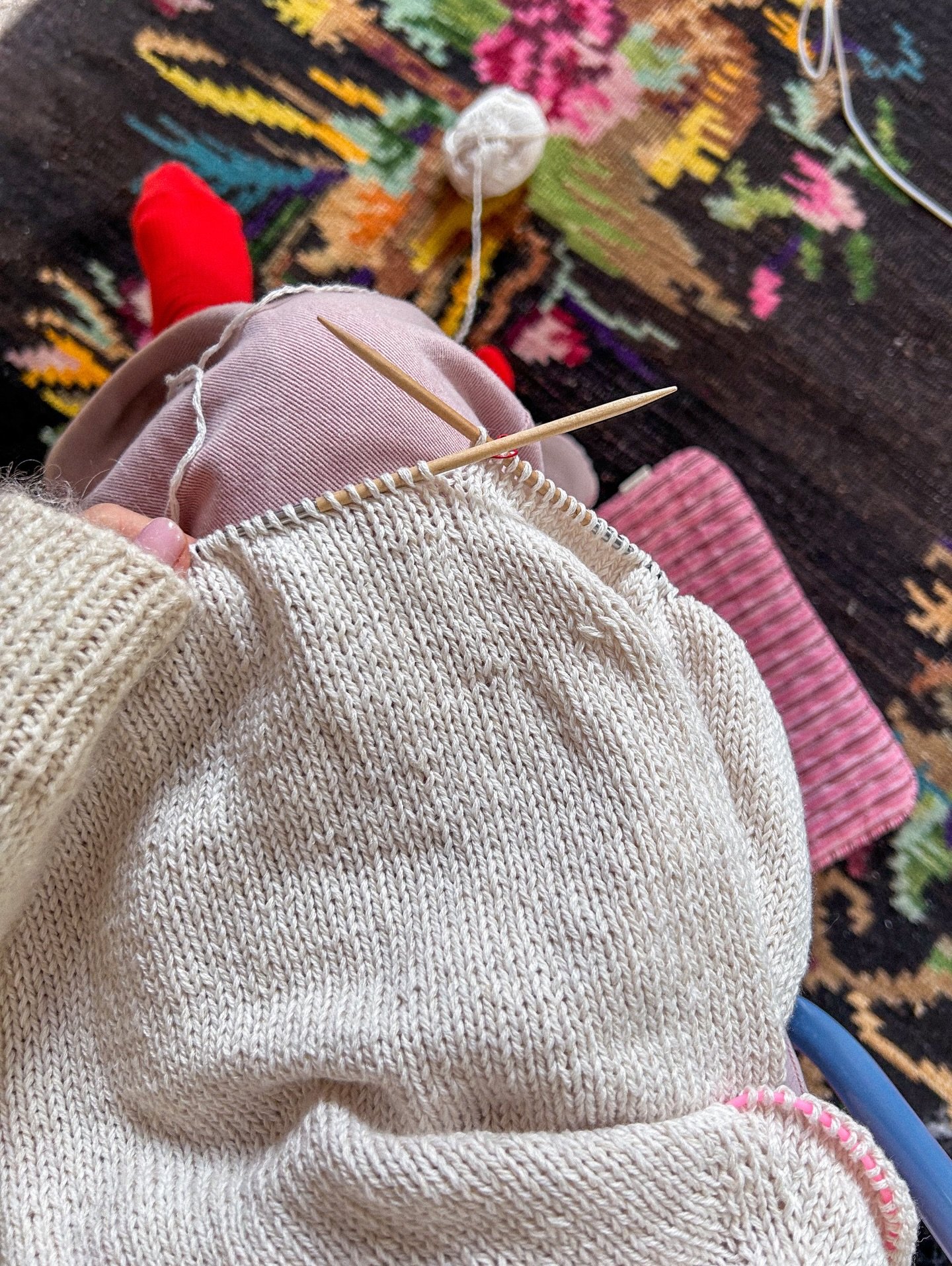 Iโm a fulltime knit designer and YouTuber who never leaves the house without a knit project.