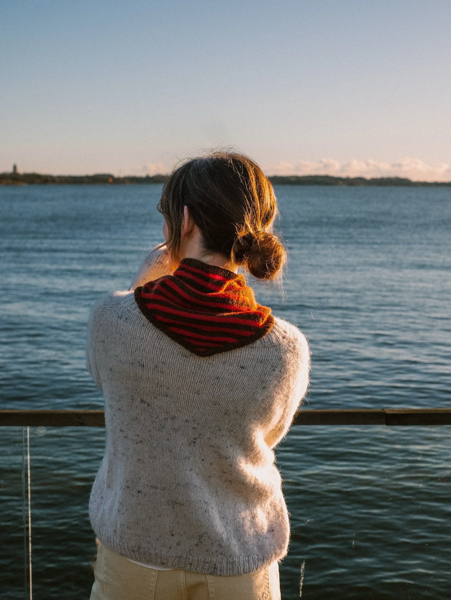 In My Stripes Era Scarf is the perfect little accessory for when you want to add a touch of personality to your outfit. You can wear the scarf loosely tied around your neck for a bit of sailor-meets-French-girl energy, or tucked neatly under a coat collar. This triangular shaped scarf is worked flat in two colors and is a great project for using up leftover yarn or experimenting with stripe combinations.