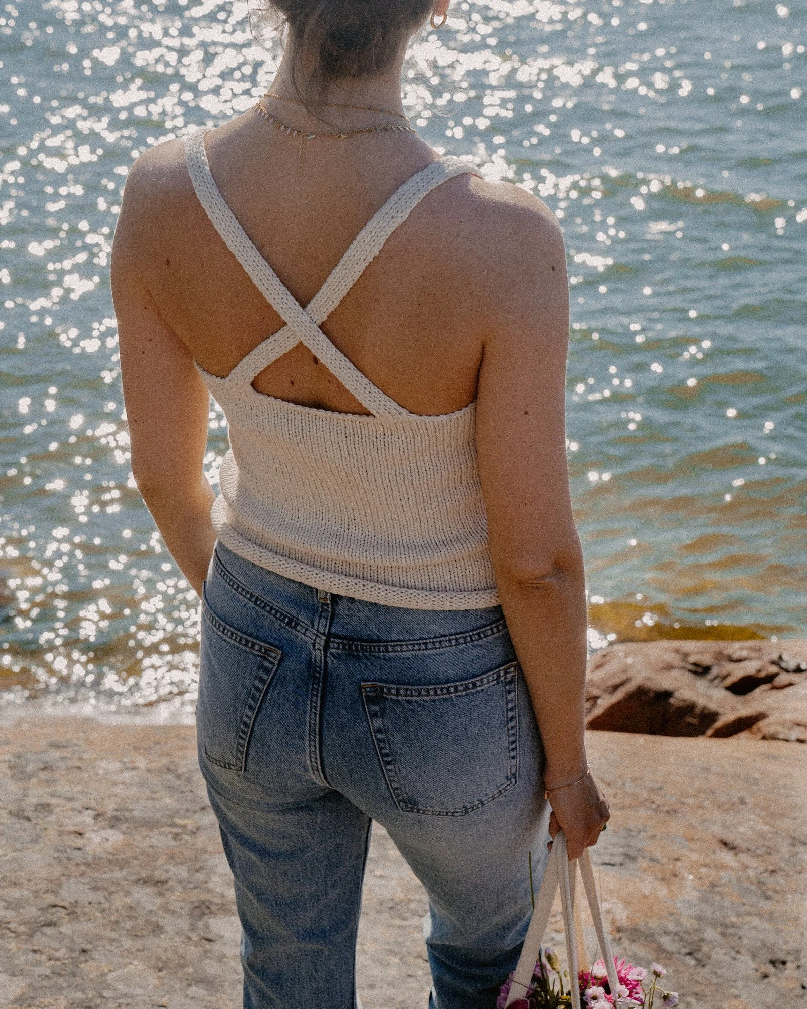 The top is worked holding 2 strands of cotton yarn together.