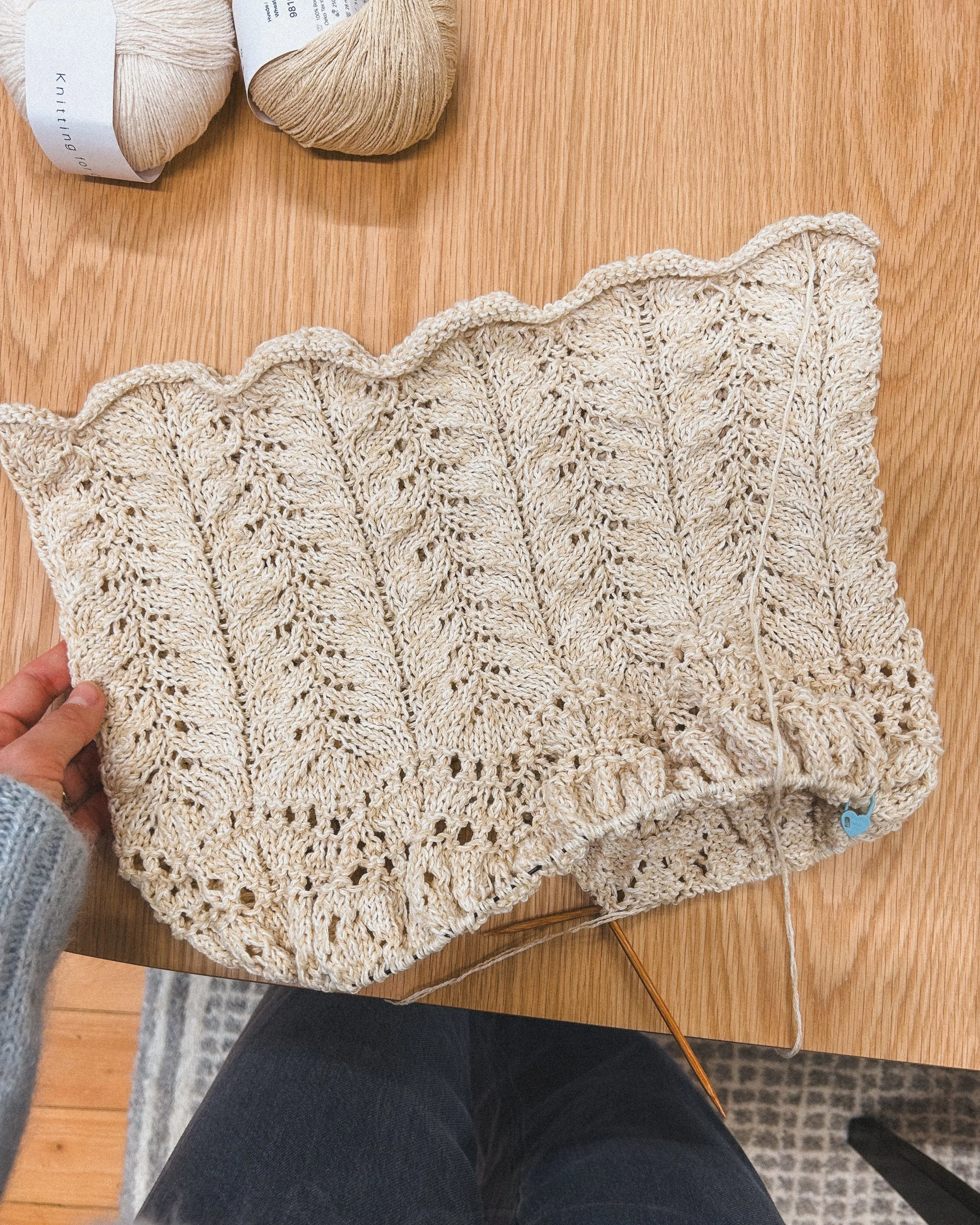 350 (375, 400, 425) (450, 465, 485) (500, 515, 425) g of Sandnes Garn Tynn Line (53% cotton, 33% viscose, 14% linen- 220 m / 230 yds / 50g) in the color 3161.